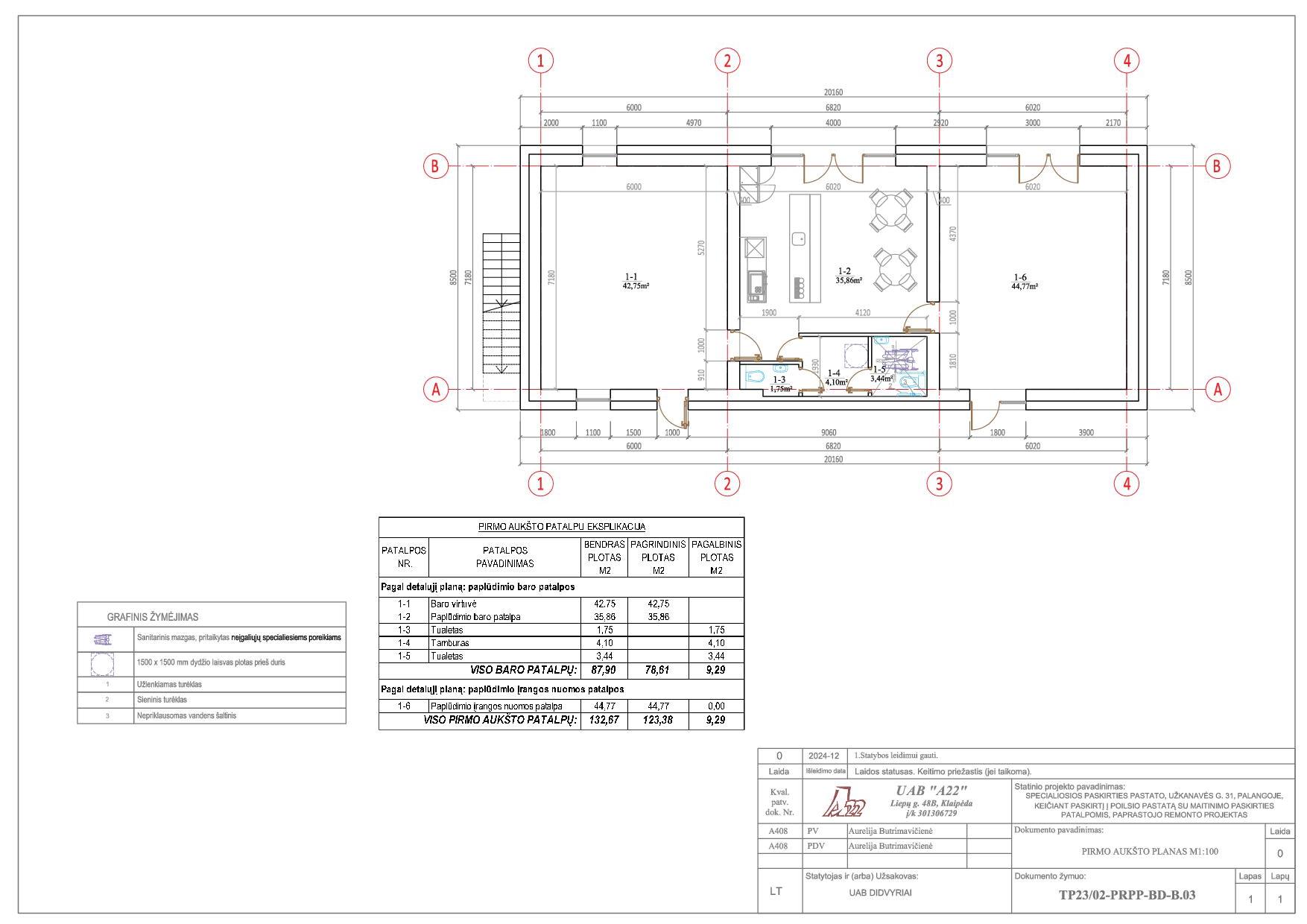 Projekto pavadinimas „Specialiosios paskirties pastato, Užkanavės g. 31, Palangoje, keičiant paskirtį į poilsio pastatą su maitinimo paskirties patalpomis, paprastojo remonto projektas“.