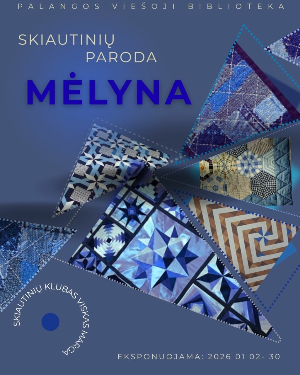 Palangos viešosios bibliotekos parodų salėje sausio 2 - 30 dienomis eksponuojama skiautinių klubo ,,Viskas marga“ paroda „Mėlyna“. Neoficialus skiautinių klubas subūrė 10 moterų, kurios kuria, dalinasi idėjomis, patirtimi ir puoselėja rankų darbo tradicijos tęstinumą šiuolaikiniame kontekste. Vyraujanti mėlyna spalva tapo jungiančiu parodos motyvu, simbolizuojančiu ramybę, gilumą ir Palangos pajūrio dvasią.