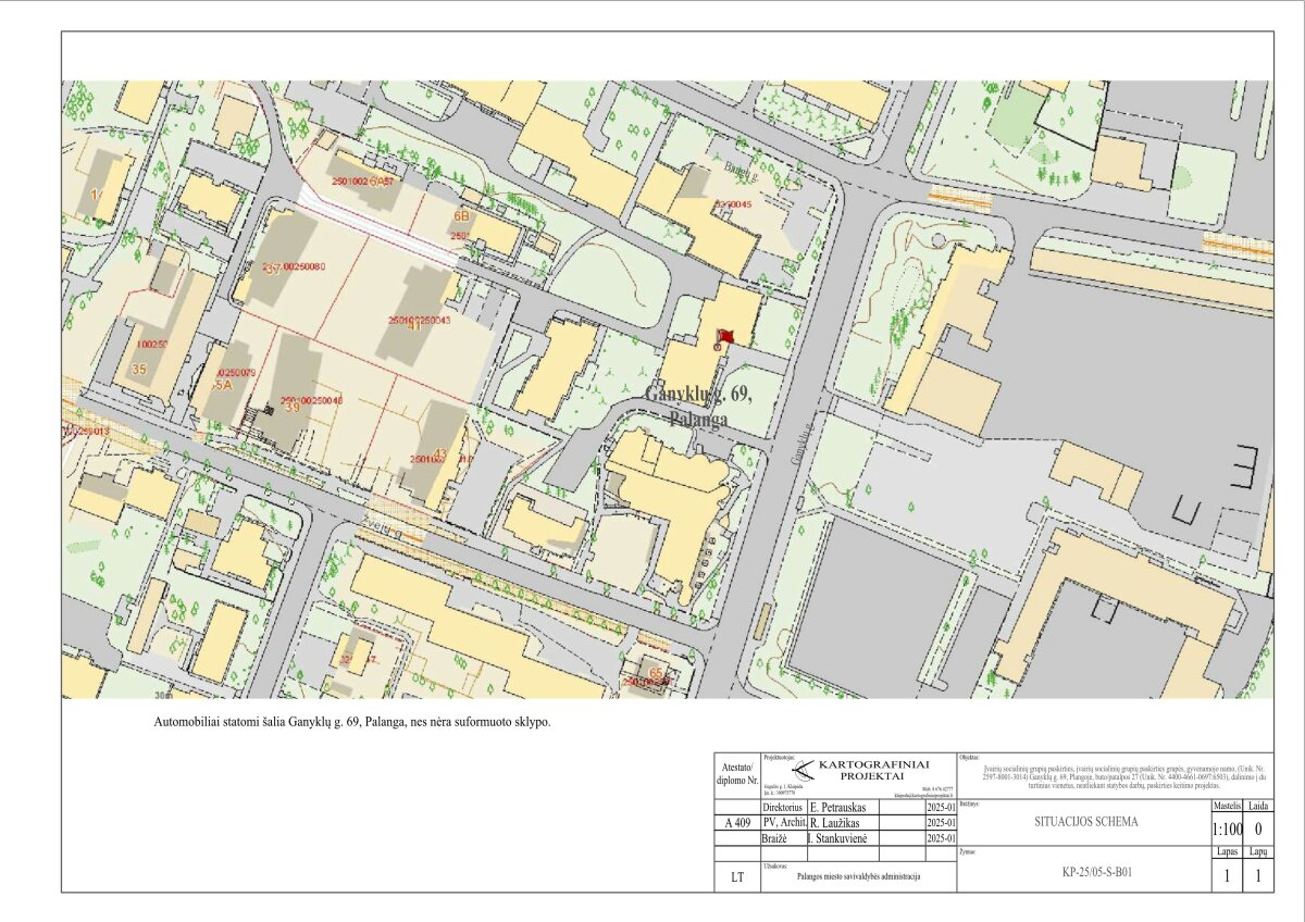 Visuomenės informavimas apie parengtą gyvenamojo namo, (Unik. Nr. 2597-8001-3014) Ganyklų g. 69, Plangoje, buto/patalpos 27 (Unik. Nr. 4400-4661-0697:6503), dalinimo į du turtinius vienetus, neatliekant statybos darbų, paskirties keitimo projektą