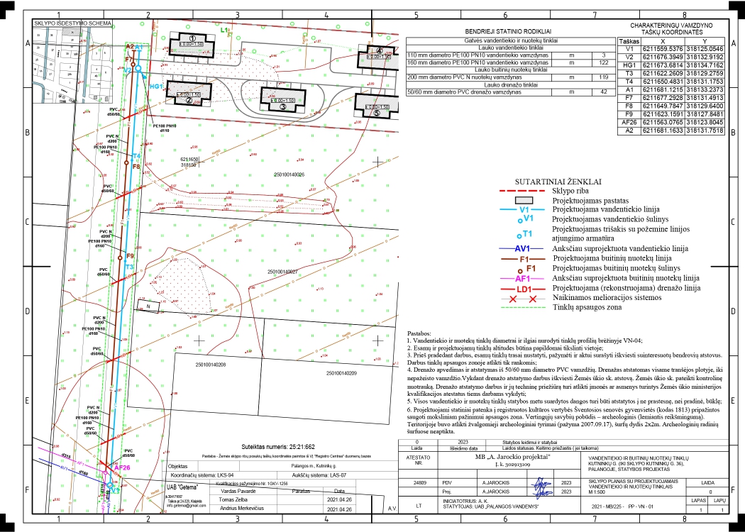 Vandentiekio ir buitinių nuotekų tinklų Kutninkų g. (iki sklypo Kutninkų g. 36), Palangoje, statybos projektas