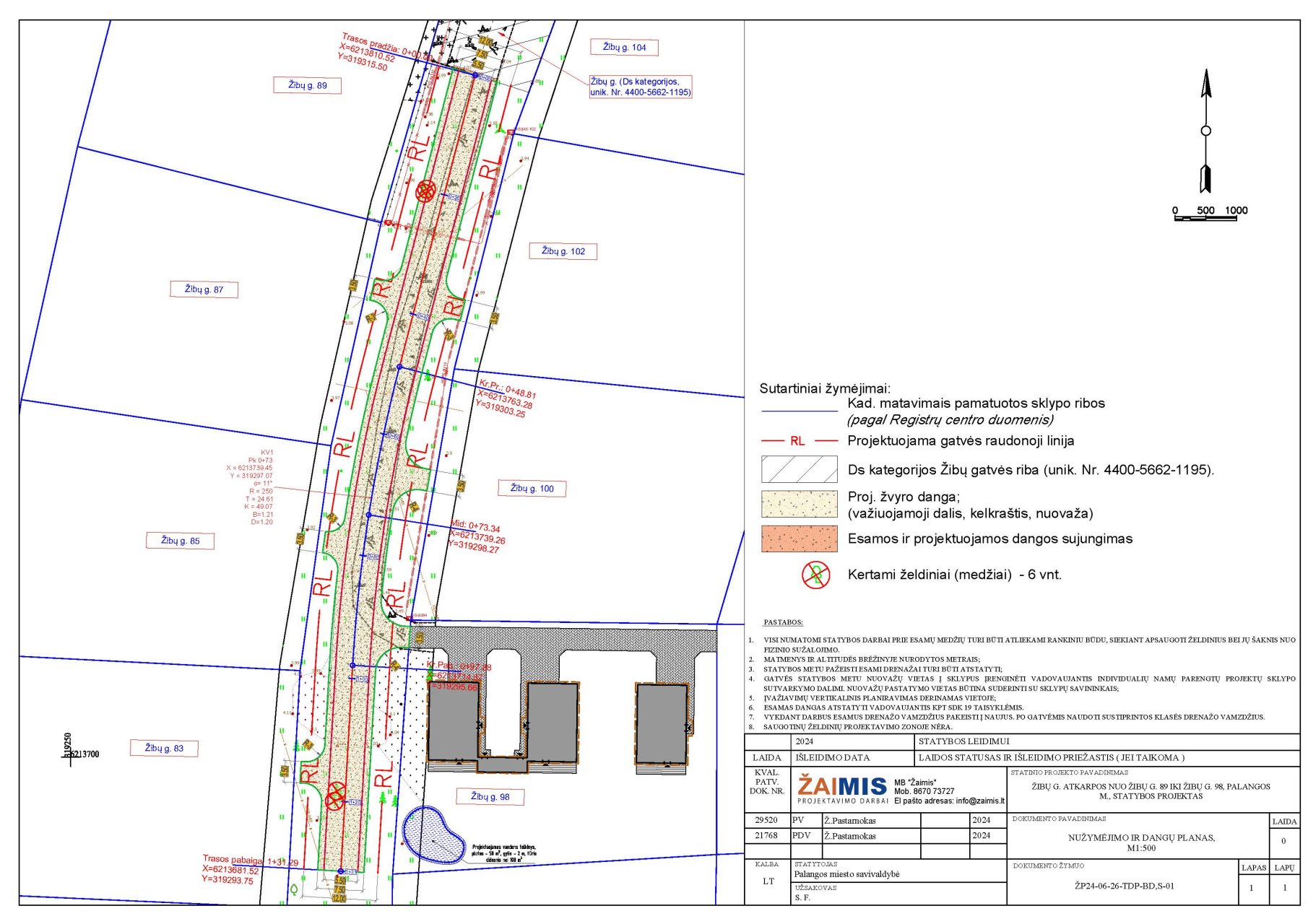 Statinių statybvietės adresas - Žibų g., Palangos m. Žemės sklypo kadastrinis numeris – valstybinė žemė, kurioje nesuformuoti žemės sklypai. Žemės sklypo geografinės koordinatės X = 6213755; Y = 3199301.